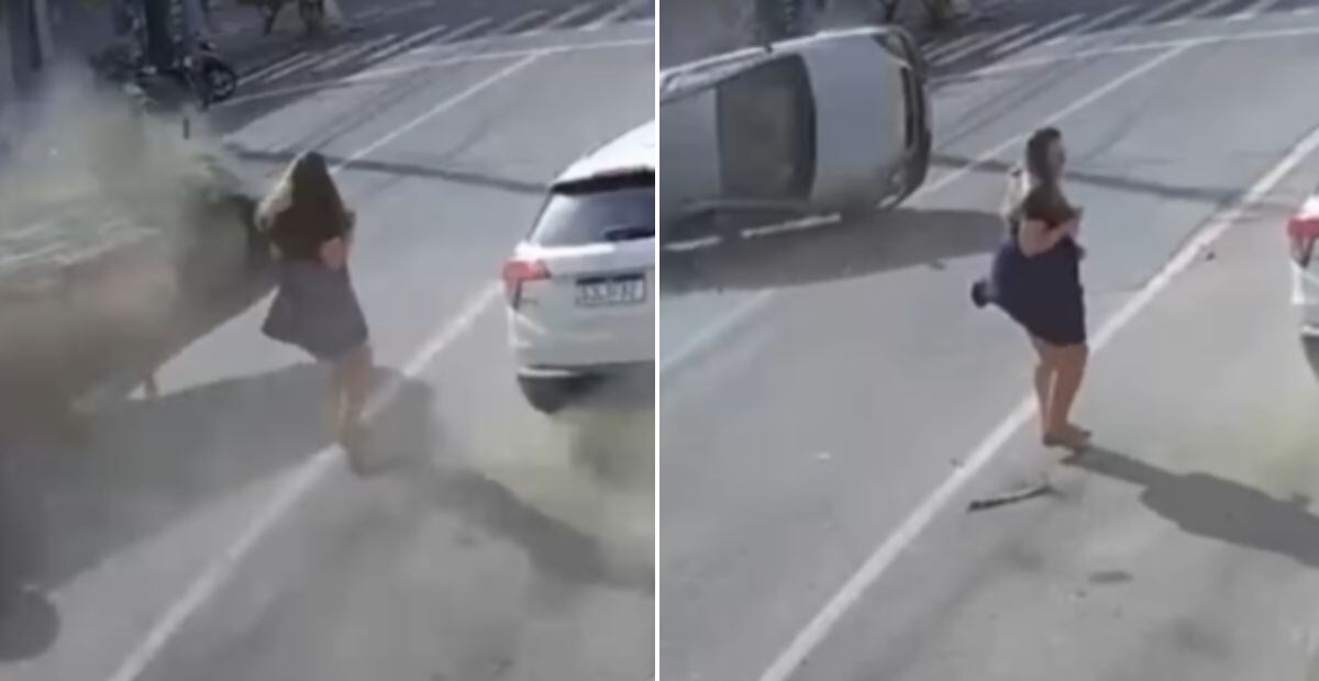 Um vídeo que circula nas redes sociais mostra o momento em que uma mulher escapou ilesa de ser atropelada por um carro desgovernado, na cidade de Braço do Norte, em Santa Catarina. As imagens mostram que ela caminhava pela rua, quando o veículo bateu em outro que estava estacionado e capotou, passando por um triz de atingir a pedestre (veja abaixo).
