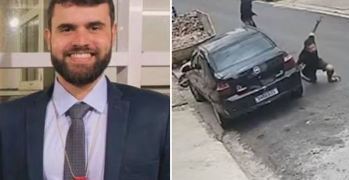 O investigador estava de chinelo, camiseta e bermuda, quando um homem em uma motocicleta, que esperava atrás de uma caçamba, atirou na direção da vítima (veja abaixo).