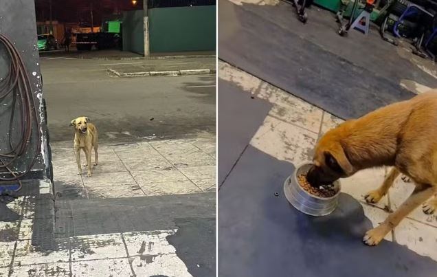 Imagens de uma câmera de segurança registraram o momento em que um carro se aproxima do estabelecimento e utiliza o calibrador de pneus como “desculpa” para deixar o animal no local. Assustado, o cão permaneceu onde foi abandonado e, segundo proprietário da borracharia, “fareja todos os clientes” para tentar reencontrar o tutor.