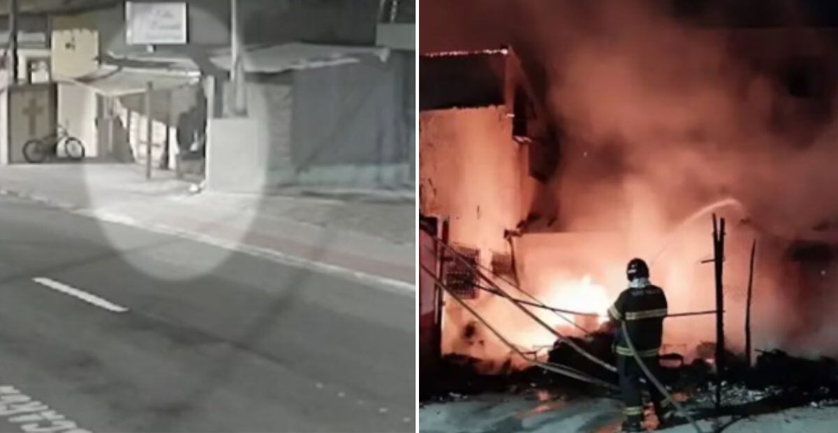 Conforme a PM, testemunhas relataram que viram um homem saindo do local às pressas, logo após o início das chamas. Assim, as imagens de câmeras de segurança foram analisadas e os agentes viram o suspeito fugindo em uma bicicleta.