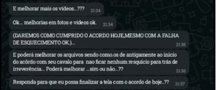 Em mensagens, os acusados cobram as adolescentes a produzir até 20 conteúdos sexuais por dia e determinavam que as meninas tinham apenas uma hora para concluir o “acordo diário”.
