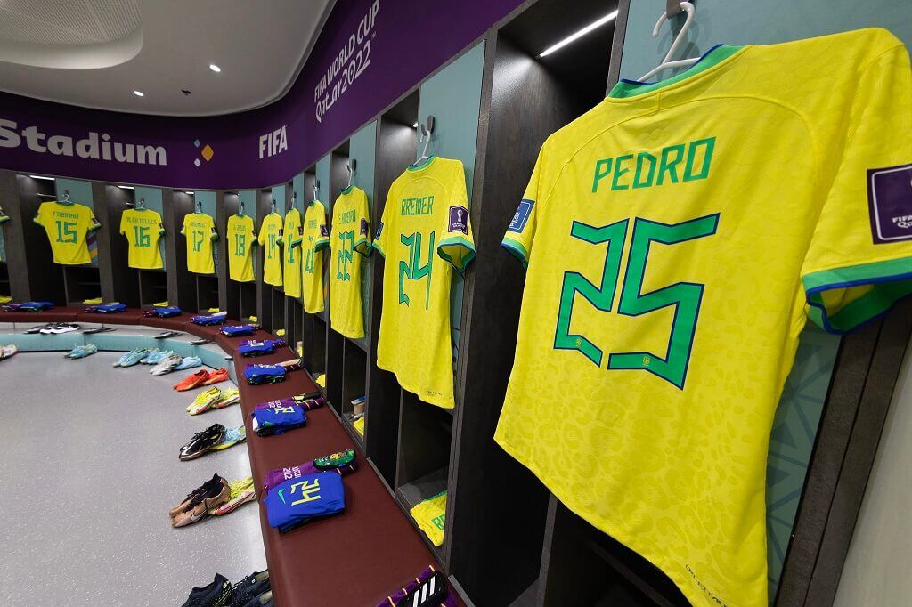 A combinação de camisa amarela, calção azul e meias brancas é a mesma usada pelo Brasil na maioria dos jogos em quatro dos cinco títulos do nosso país — com exceção da primeira taça, em 1958, quando a Seleção teve de utilizar camisa azul. No entanto, também foi com essas cores que o Brasil foi eliminado nas quartas de final de 2018, na Rússia, pela Bélgica.