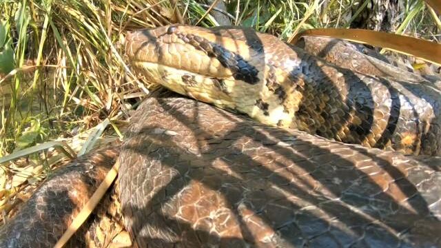 “A cobra sem fim - uma gigante graciosa”, escreveu ao divulgar as imagens da cobra de 7 metros.