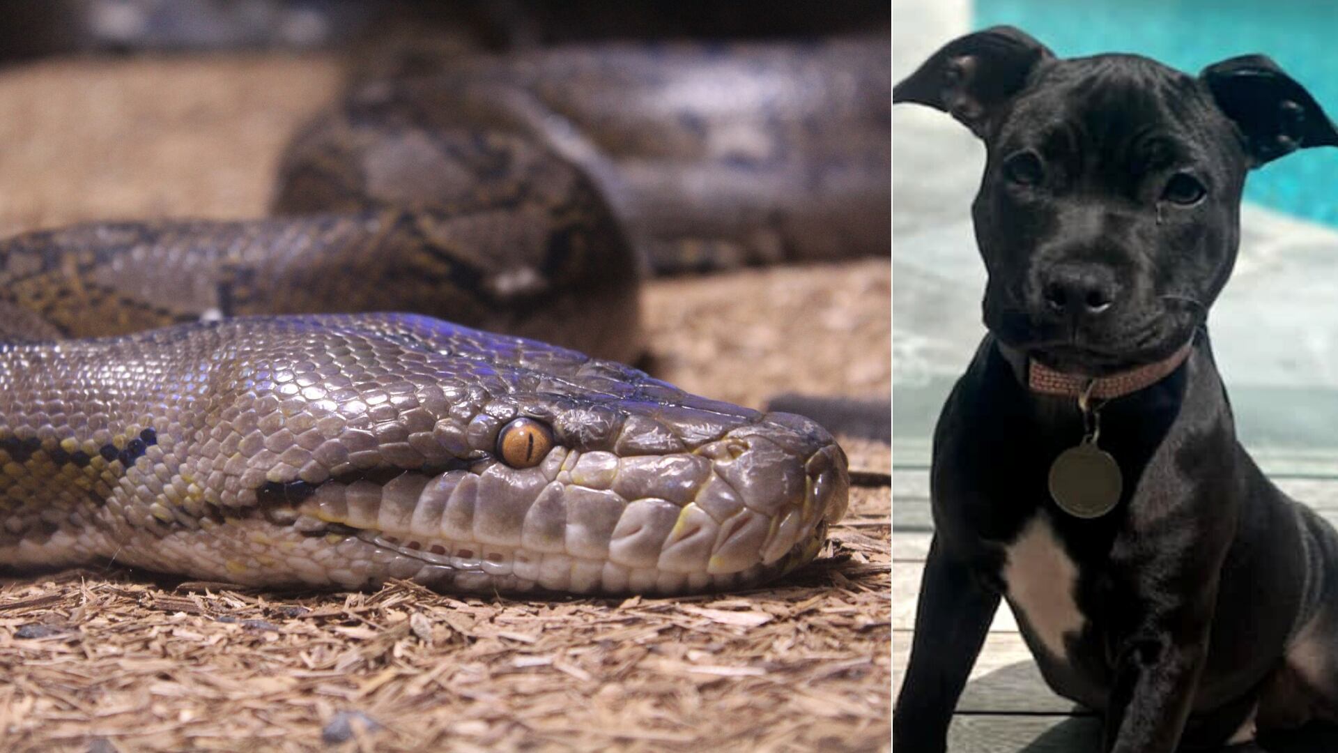 A dona de um cachorro chamado Panda viveu momentos assustadores quando encontrou uma cobra píton de quase 3 metros tentando matar e se alimentar do animal. O caso ocorreu no quintal de uma casa na Austrália.