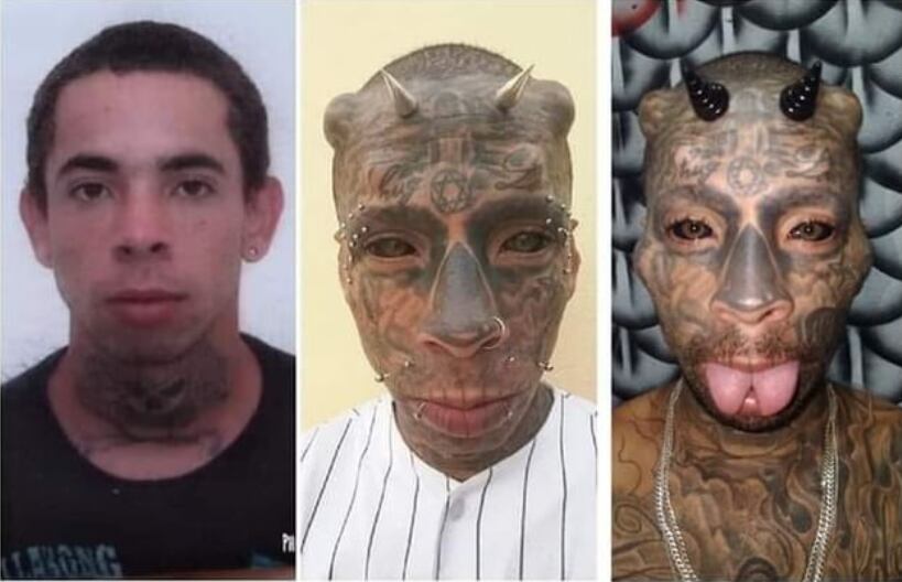 Conforme a publicação feita pelo The Mirror, o homem, que é de Brasília, já realizou diversos procedimentos para modificar sua aparência, incluindo cortar partes de suas orelhas e tatuar os globos oculares.