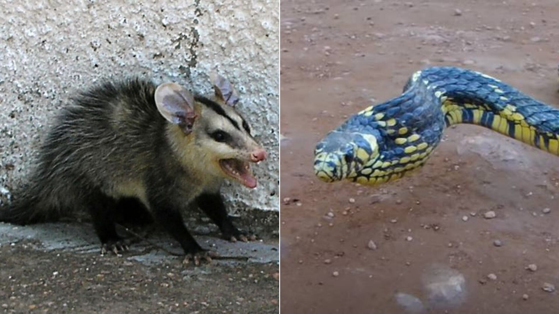 Uma cobra caninana, uma das mais ágeis e rápidas do Brasil, foi flagrada em uma disputa pela sobrevivência com um gambá em Ilhabela, litoral de São Paulo. O vídeo enviado ao biólogo Henrique, conhecido como o biólogo das cobras, está em seu canal no YouTube.
