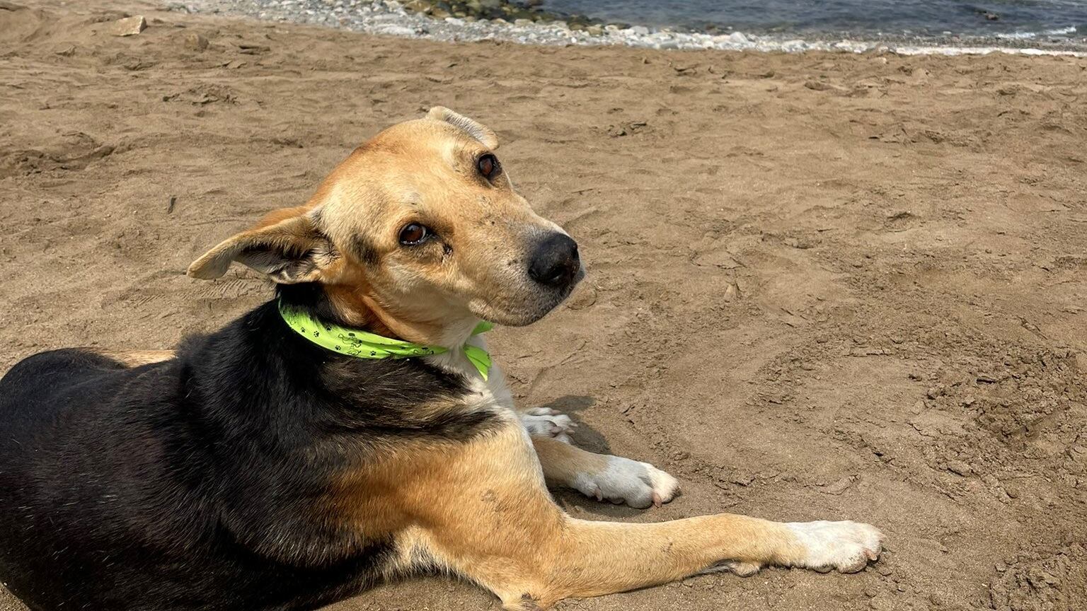 Após a jovem e sua família se estabelecerem ao longo da costa, um cachorro que parecia estar sozinho apareceu aleatoriamente no local. Jolie relatou ao The Dodo que o cãozinho não parecia estar abandonado, usava uma fita no pescoço e tinha os pelos limpos. “Eu acariciei esperando por seu dono, mas minutos se passaram e ninguém veio”, afirmou.