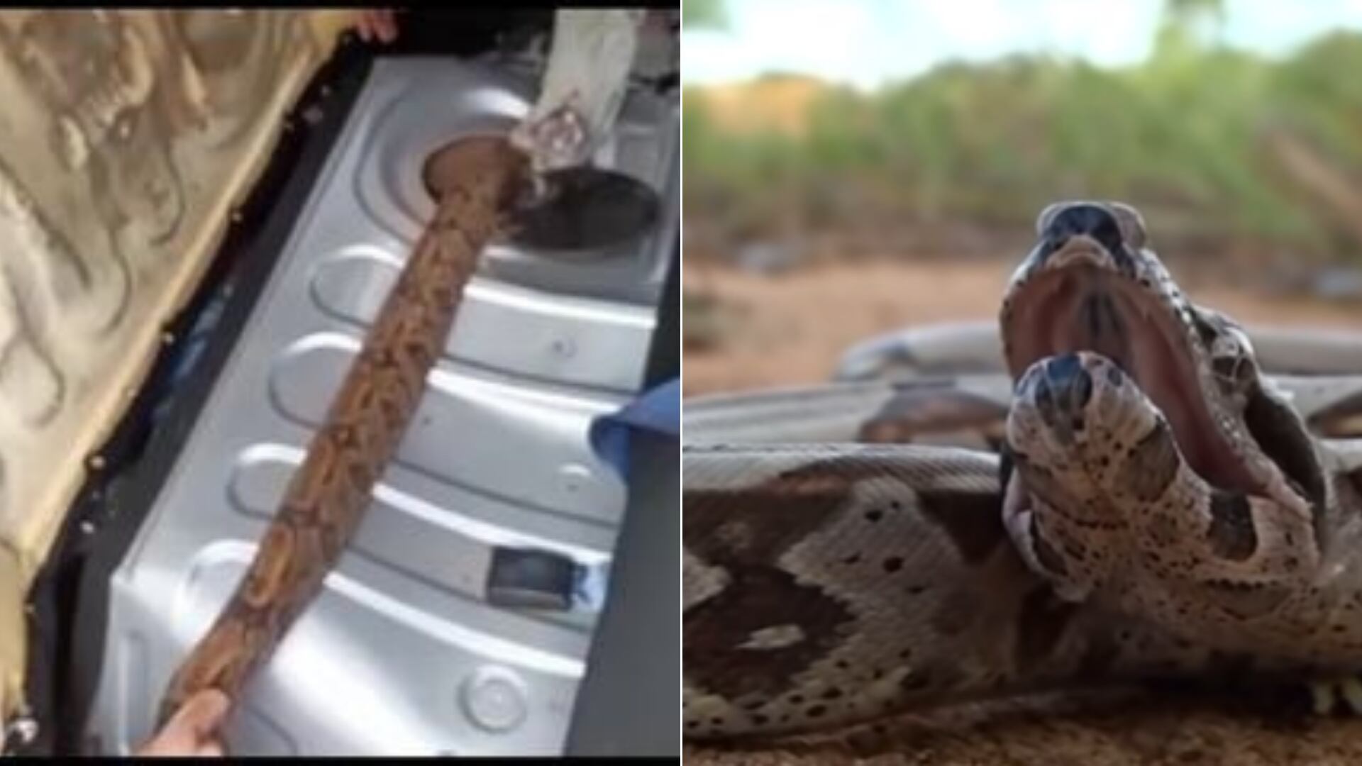 Veja as imagens que mostram a operação para libertar a jiboia: