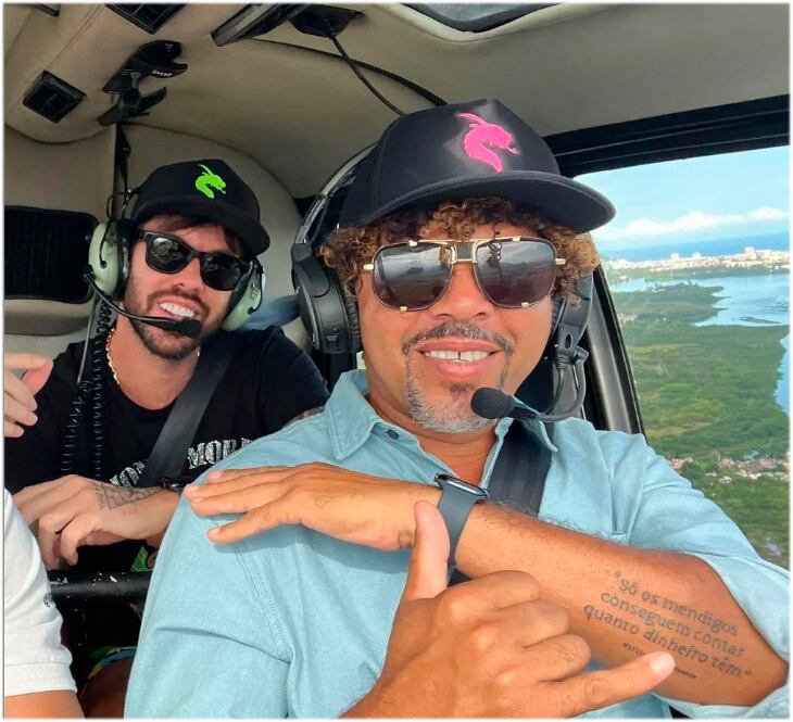 Em sua postagem atual, ele é visto em festas, beijando mulheres famosas, desfilando de carros importados ou andando de helicóptero.