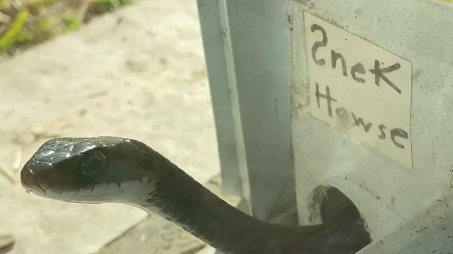 Ao perceber que a cobrinha estava presa em um buraco na porta da tela, sem poder sair, a mulher usou uma furadeira e, cuidadosamente, aumentou o buraco para que o animal pudesse se libertar. Mais tarde, a cobra foi apelidada de Snickers.