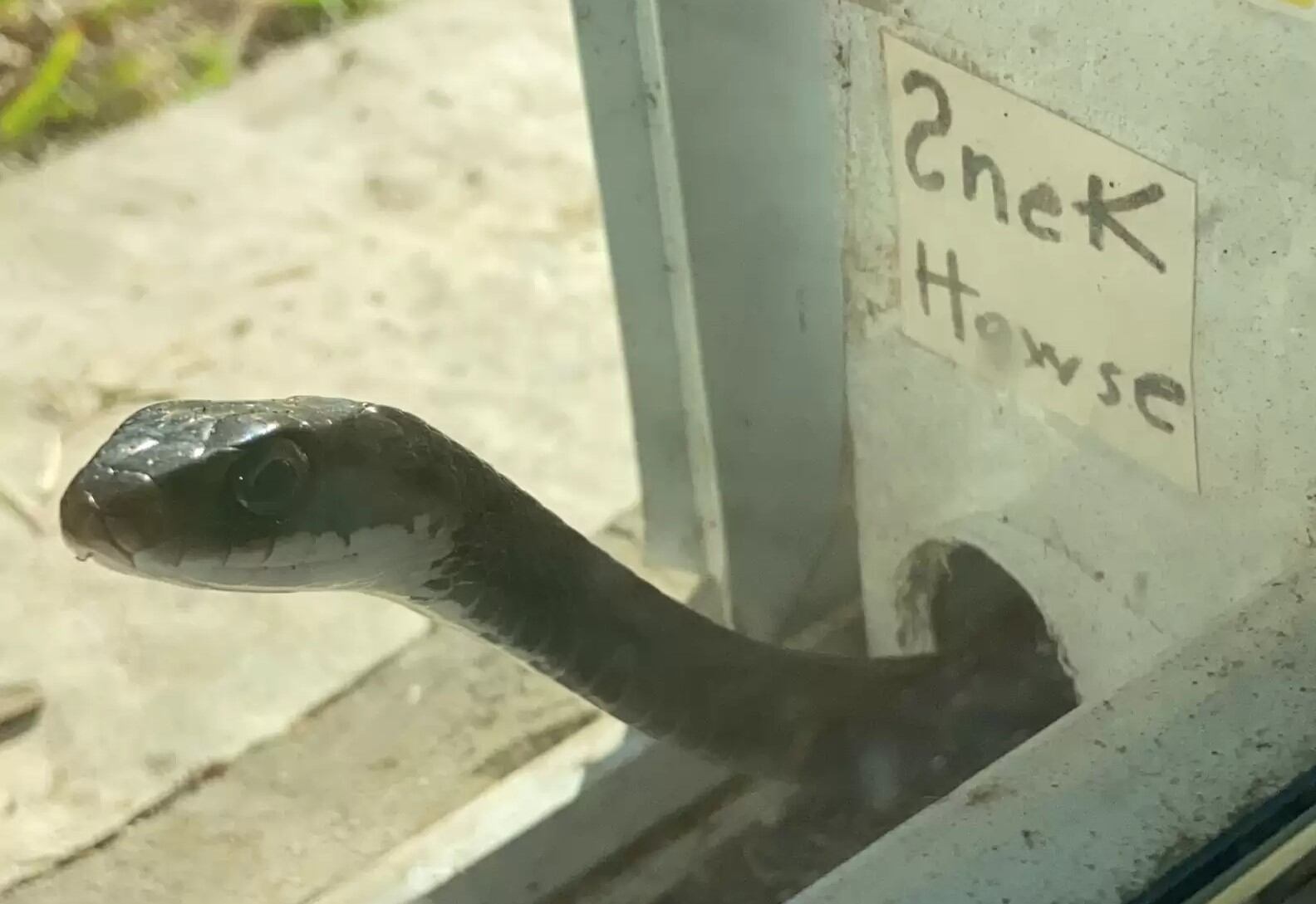 Ao perceber que a cobrinha estava presa em um buraco na porta da tela, sem poder sair, a mulher usou uma furadeira e, cuidadosamente, aumentou o buraco para que o animal pudesse se libertar. Mais tarde, a cobra foi apelidada de Snickers.