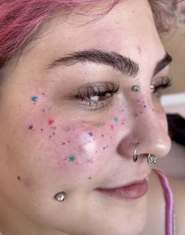 O momento em que uma tatuadora apresenta as tatuagens de “sardas arco-íris” de uma de suas clientes rapidamente viralizou entre os usuários do TikTok. A mulher teve diversas estrelas coloridas tatuadas em seu rosto acompanhando suas sardas naturais.