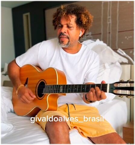 No post de hoje do TikTok Givaldo está sentado na cama, cantando Djavan e tocando violão. Ao fundo, uma mulher que não aparece canta a canção com ele. “Vamos de música com minha amiguinha”, postou.