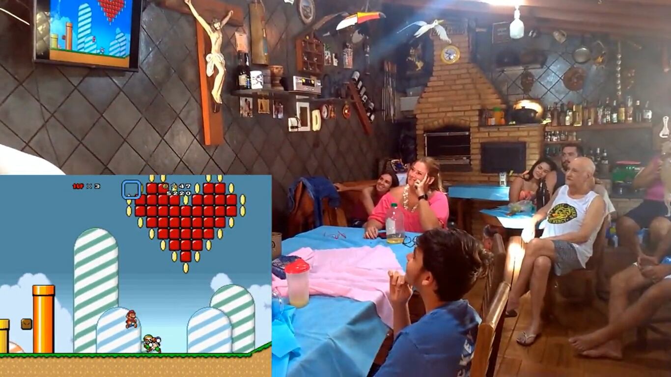 Na tarde desta segunda-feira (18), um rapaz chamado Igor Barato publicou um vídeo que viralizou nas redes sociais. Com a família reunida em uma sala, o famoso jogo da Nintendo, Super Mario, era transmitido na tela. Contudo, não era uma fase comum pela qual o personagem transitava.