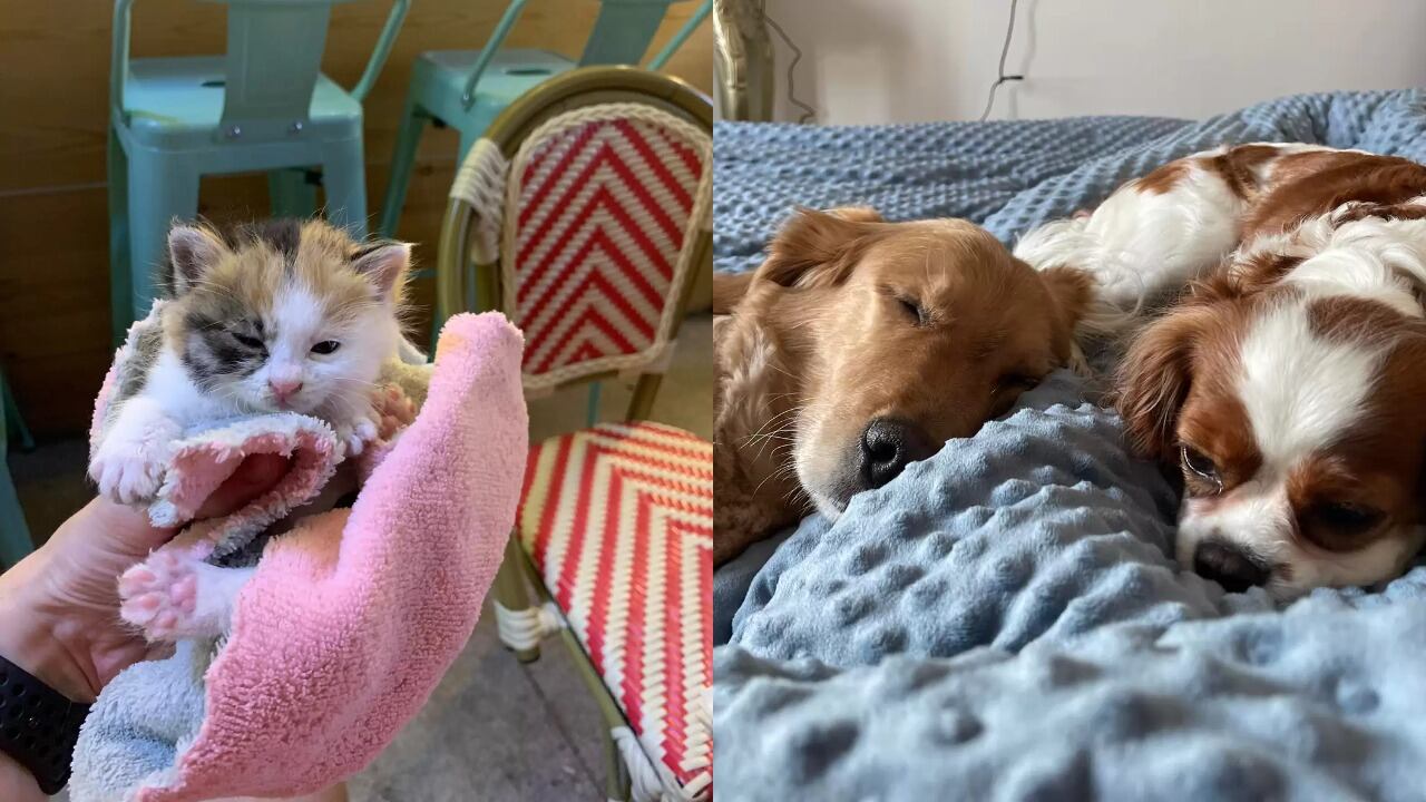 “Criar um gatinho é muito diferente de um filhote”, disse Hearn. “Os requisitos de alimentação e banho podem ser exaustivos, mas valeu a pena. Ela brinca com os cachorros o dia todo e temos uma câmera em casa para observá-los no trabalho. Os cães estão sempre olhando para ela e ao lado dela.”