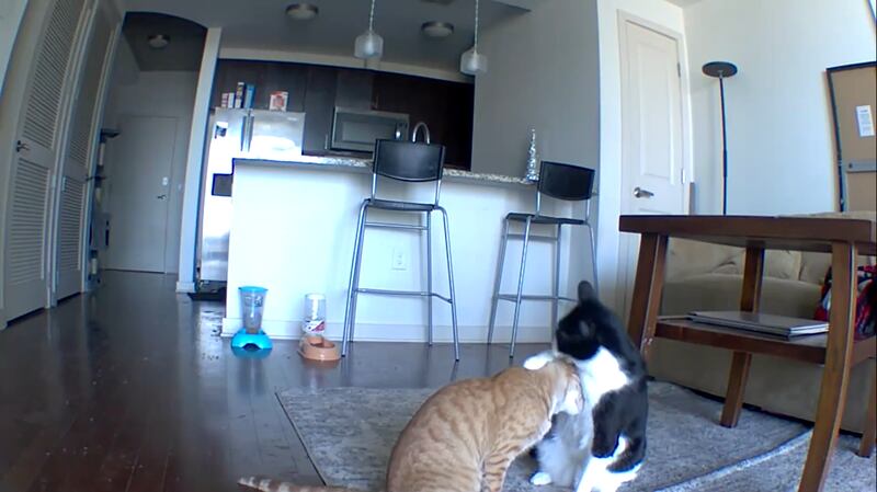 Certo dia, Leger saiu de casa por uma semana, deixando seus dois gatinhos sozinhos juntos pela primeira vez. A mulher contratou uma cuidadora de animais durante esse período, que sempre os visitava para checar os pets. Contudo, a dupla de gatos sempre se escondia.