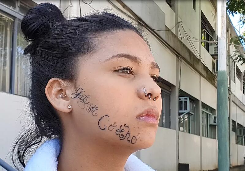 “Logo depois das agressões, ele amarrou os meus dois braços e falou que ia tatuar meu rosto. Eu chorei, implorei. Eu pedi para ele não fazer isso porque ia destruir a minha vida e ela disse que faria mesmo assim. E enquanto eu gritava, ele me batia. Eu só vi a tatuagem pronta depois e só conseguia chorar”, disse a jovem.