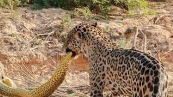 Esta não é a primeira vez que onças vencem a batalha contra uma sucuri e as imagens fazem sucesso na Internet!