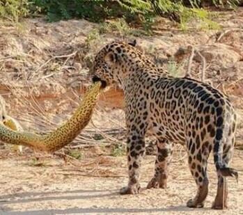 Esta não é a primeira vez que onças vencem a batalha contra uma sucuri e as imagens fazem sucesso na Internet!