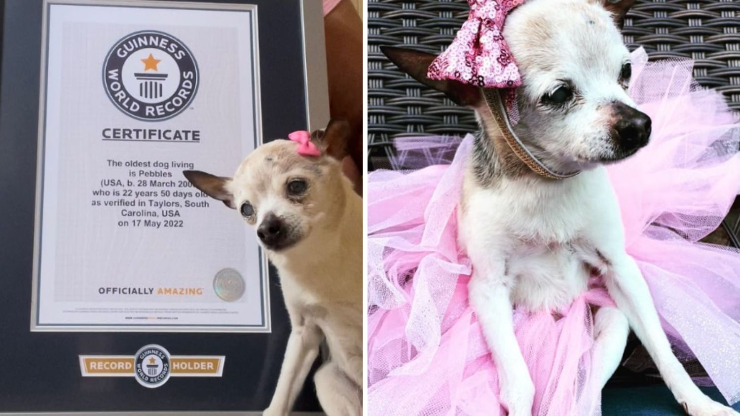 A cachorrinha Pebbles, da raça Toy Fox Terrier, foi reconhecida oficialmente pelo Guinness World Records, o Livro dos Recordes, como a cadela mais velha do mundo. Aos 22 anos, ela vive com seus donos, Bobby e Julie Gregory, na Carolina do Sul, nos Estados Unidos. A rotina do animal, que gosta de ouvir música country e comer pizza, é compartilhada nas redes sociais.