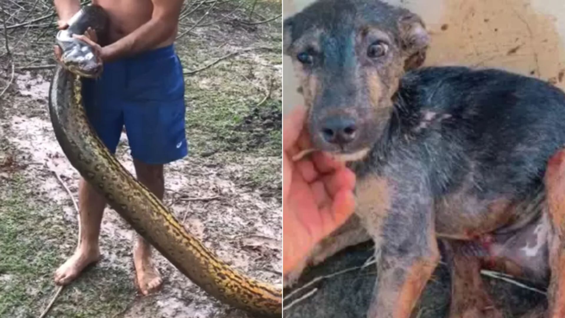 “Eu com o @_caioalmeid, estávamos pescando quando essa pequena pegou o cachorro do nosso lado e puxou para dentro da água, salvamos o cachorro e iremos levar a cobra para uma reserva para soltura. OBS: Cobra e cachorro estão bem”, publicou no Instagram.
