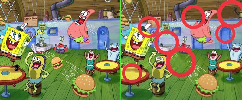 7 erros: você consegue encontrar os pequenos detalhes escondidos nestas imagens do desenho ‘Bob Esponja’?