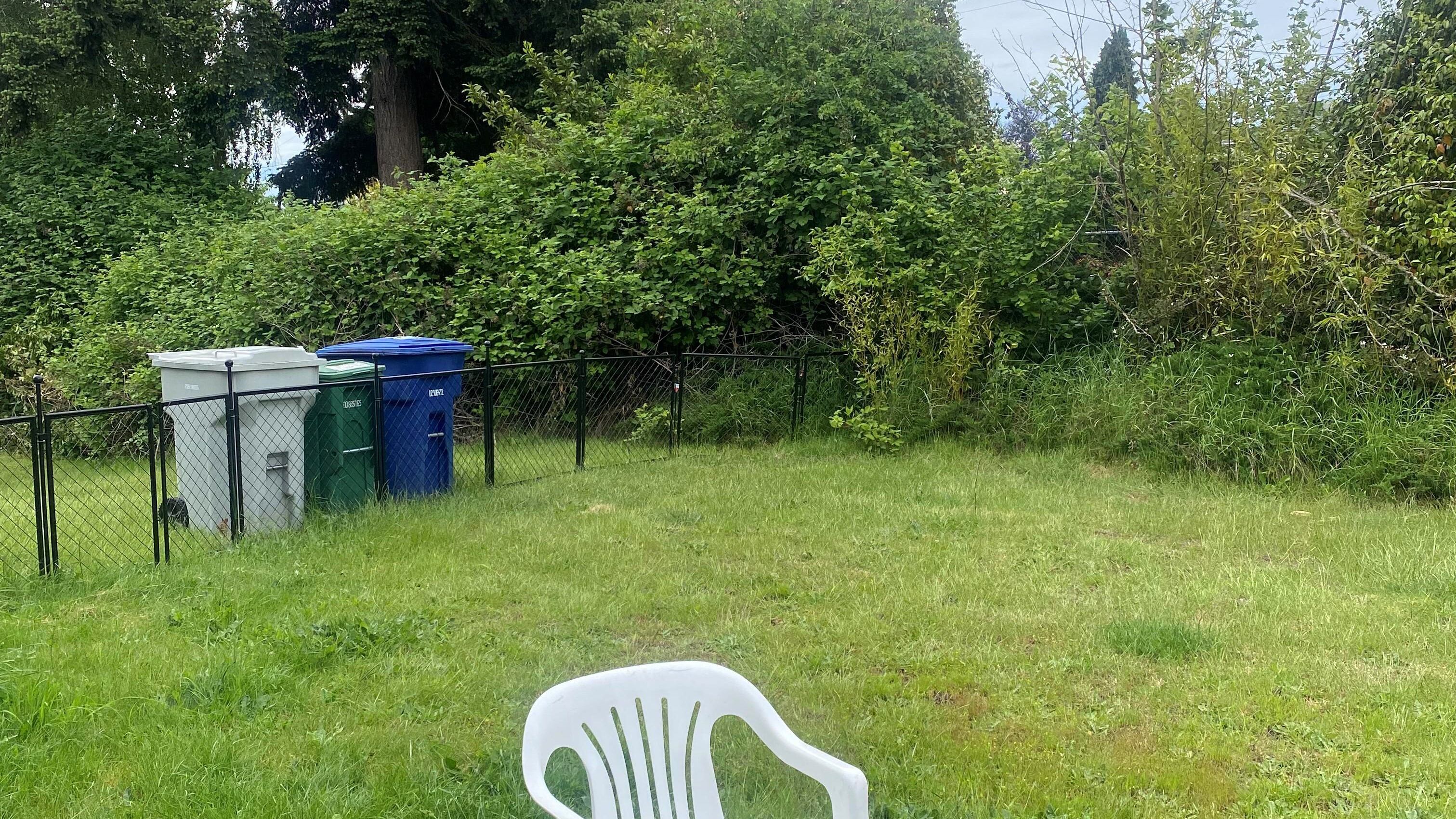 Abaixo, você encontra uma cadeira branca no meio da grama. Contudo, estamos procurando pela presença de um coelho bem escondidinho. Você consegue apontá-lo na imagem? Observe bem!
