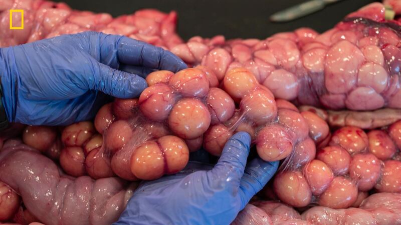 Durante uma necropsia, os pesquisadores descobriram que a fêmea da píton birmanesa tinha 122 ovos em desenvolvimento dentro do abdômen.
