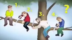 Você consegue passar neste teste? A tarefa consiste no seguinte: Há quatro pessoas em cima de uma árvore tentando se beneficiar em cima do galho de uma árvore. Contudo, a atitude de um deles pode resultar na queda de alguém. Será que é capaz de identificar qual deles é o menos inteligente?