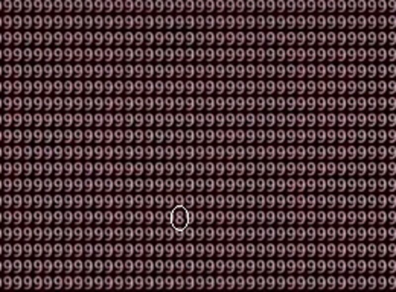 Você consegue passar neste teste? A tarefa consiste no seguinte: Há diversos números ‘9′ espalhados na figura. Contudo, existe apenas um número ‘8′ inserido no meio dos demais. Em quanto tempo você consegue localizá-lo?