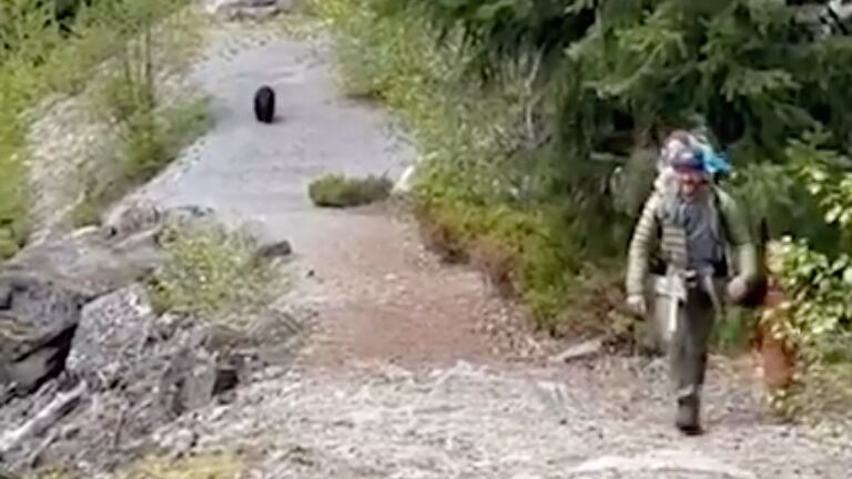 Vídeo flagra momento aterrorizante em que em que a família é perseguida por um urso selvagem durante trilha