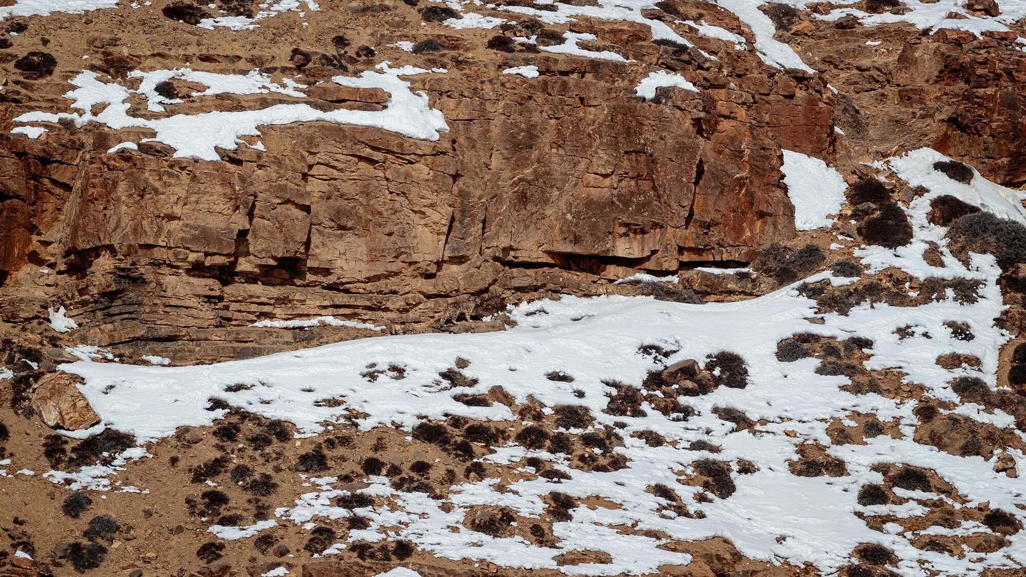 Procurando por um desafio para começar a semana exercitando bem o cérebro? Na imagem, existe um leopardo-das-neves passeando entre as pedras.