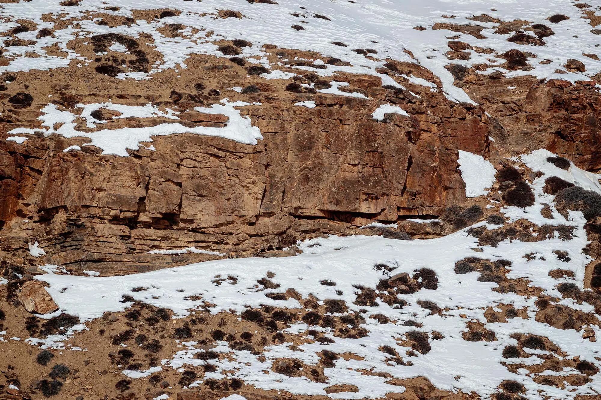 Procurando por um desafio para começar a semana exercitando bem o cérebro? Na imagem, existe um leopardo-das-neves passeando entre as pedras.