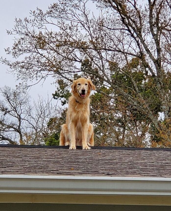 Um golden retriever está chamando atenção na cidade de Austin, no Texas. O cachorrinho Huckleberry decidiu aproveitar algumas horas de descanso observando o movimento em um lugar inusitado: o telhado de sua casa.