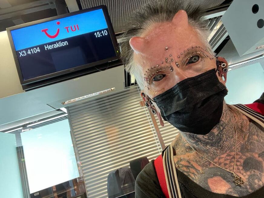 Reconhecido pelo Guinness World Records como o homem com maior número de modificações corporais, Rolf Buchholz, de 62 anos, decidiu compartilhar com seus seguidores uma imagem de como era sua aparência antes de todos os piercings e tatuagens.