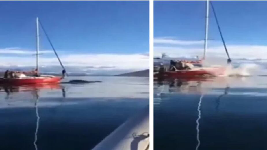 Um veleiro se chocou com uma baleia após persegui-la nas águas do Canal de Beagle, na região da Patagônia, na Argentina. Apesar de ter ocorrido em abril deste ano, uma gravação do atropelamento tornou-se viral recentemente.