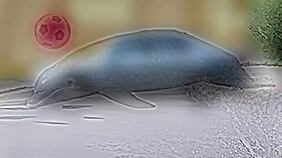 “Isto não é o que você pensa ser. Se parece com um golfinho normal, porém tente fechar seus olhos 99% e você verá um CARRO!”, diz o tiktoker durante a transmissão do vídeo.