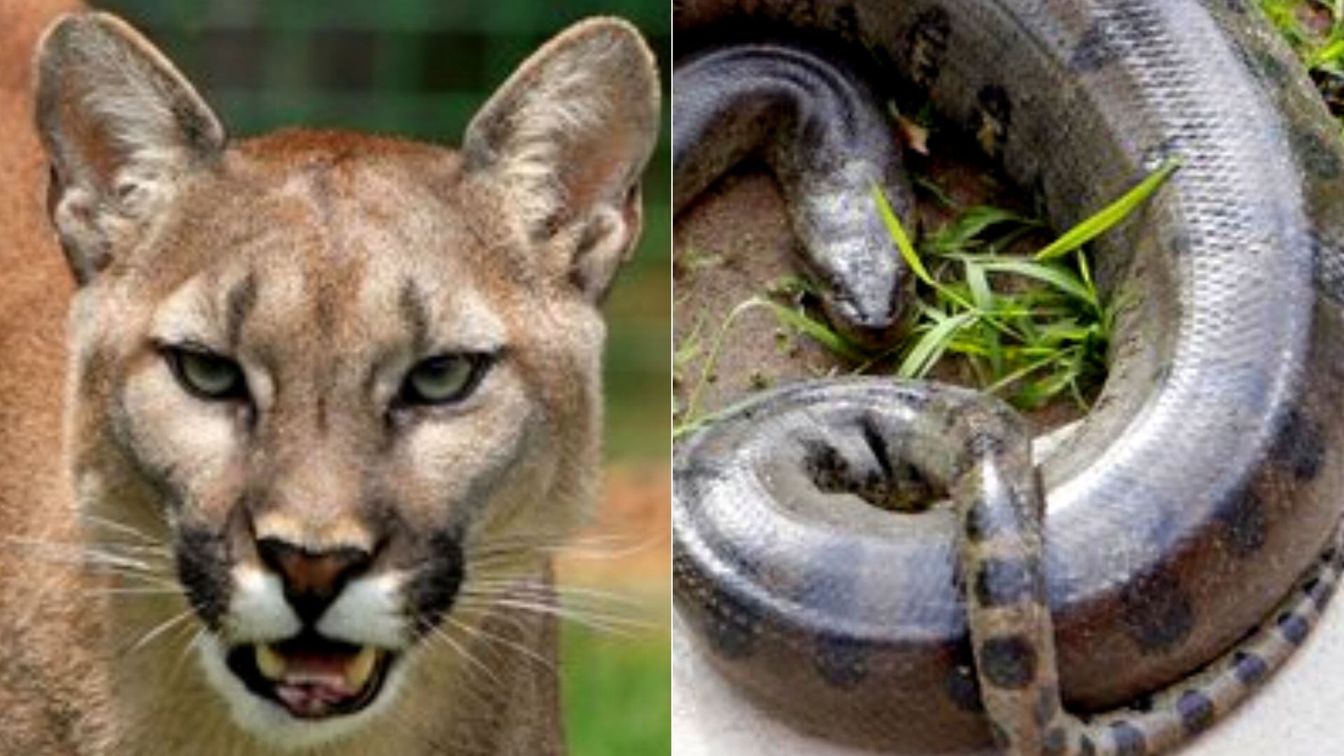 Ele usou a rede social para contar como o encontro entre uma onça-parda e uma sucuri; o segundo maior felino do Brasil e a maior cobra do país.
