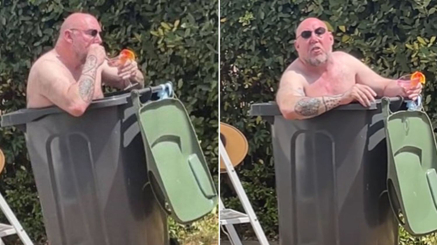 Um britânico viralizou nas redes sociais após usar uma lixeira como “piscina” para se refrescar na Inglaterra. Ele aparece nas imagens tomando um coquetel e relaxando em meio a uma onda de calor histórica que atinge a Europa. O vídeo já soma quase 3 milhões de visualizações (veja abaixo).