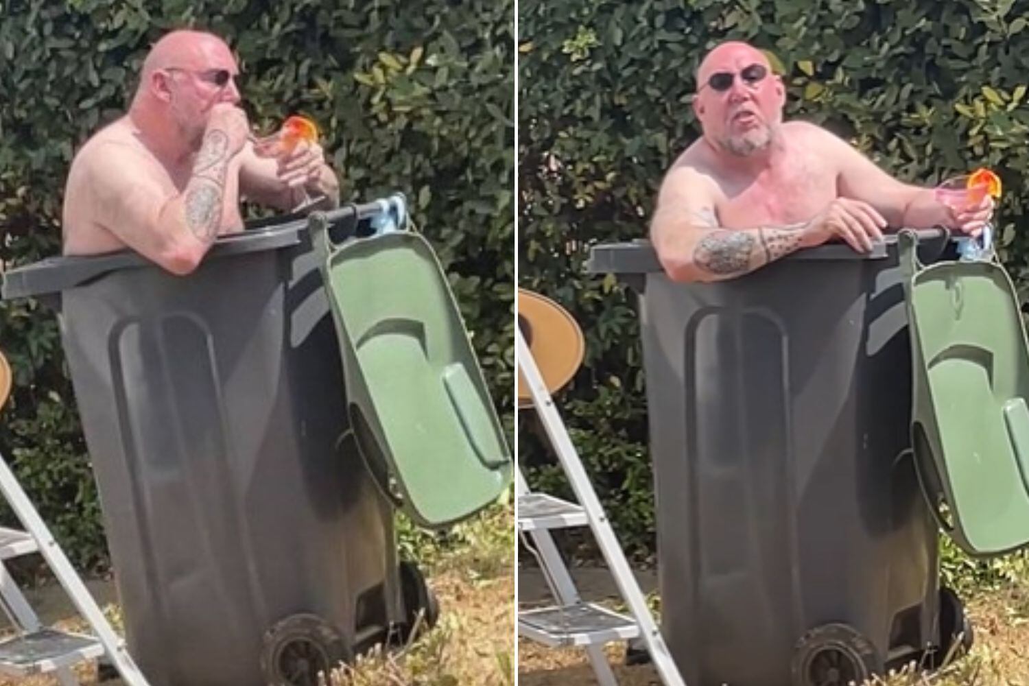 Um britânico viralizou nas redes sociais após usar uma lixeira como “piscina” para se refrescar na Inglaterra. Ele aparece nas imagens tomando um coquetel e relaxando em meio a uma onda de calor histórica que atinge a Europa. O vídeo já soma quase 3 milhões de visualizações (veja abaixo).
