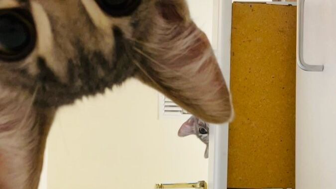 Ao ligar a câmera do celular e deslizá-la por baixo da porta para ver o que acontecia, pôde contemplar seus dois gatos espertos que, de alguma forma, conseguiram fechar a porta atrás deles.