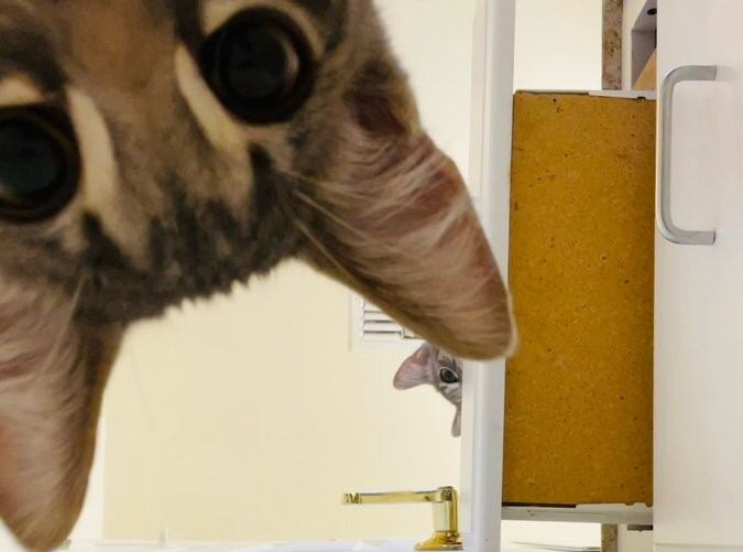 Ao ligar a câmera do celular e deslizá-la por baixo da porta para ver o que acontecia, pôde contemplar seus dois gatos espertos que, de alguma forma, conseguiram fechar a porta atrás deles.