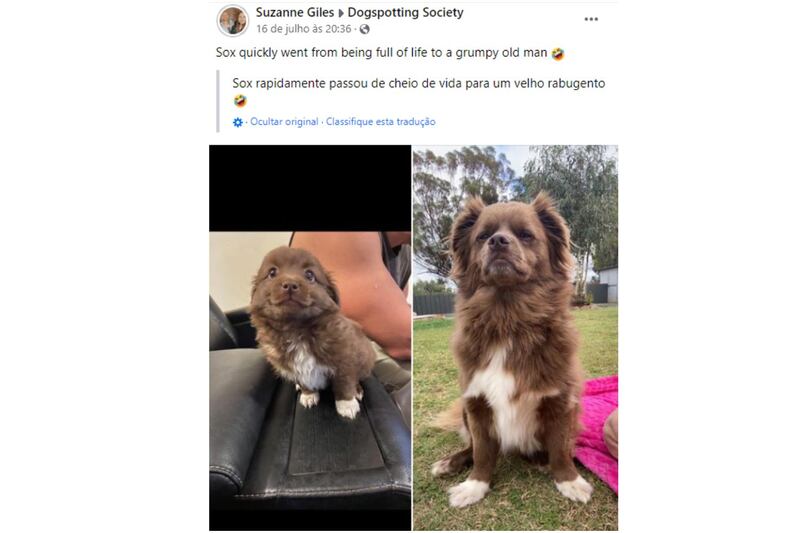 “Ele passou de um cão cheio de vida para um velho mal-humorado”, escreveu a dona em uma publicação em um grupo sobre animais, que já soma mais de 1,4 mil compartilhamentos e 1,6 mil comentários , sendo a maioria sobre a aparência de Sox.