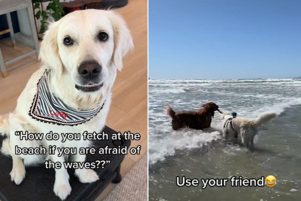 A fêmea, Lady, ama brincar na praia, mas morre de medo das ondas. Por isso, Maiu, o macho, se dispõe a buscar um graveto no mar e entregá-lo para a amiga. O vídeo, postado no perfil @ladyandtheblues no TikTok, mostra a cena.
