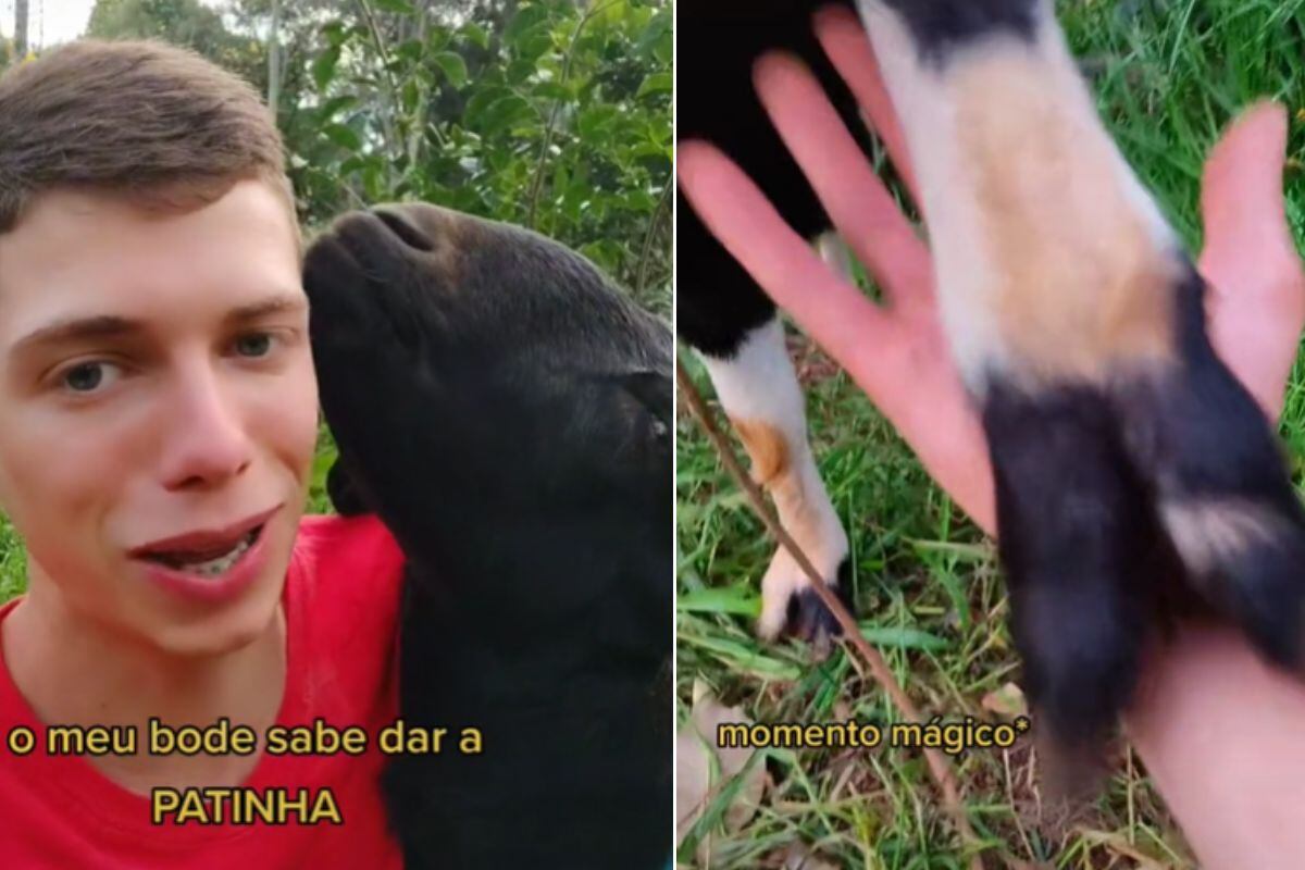 “Gente, hoje eu descobri uma coisa incrível: o meu bode sabe dar a patinha! E eu nunca nem ensinei”, diz o rapaz, todo orgulhoso e emocionado. “E daí que você tem um Golden Retriever? Eu tenho um bode”, brinca.