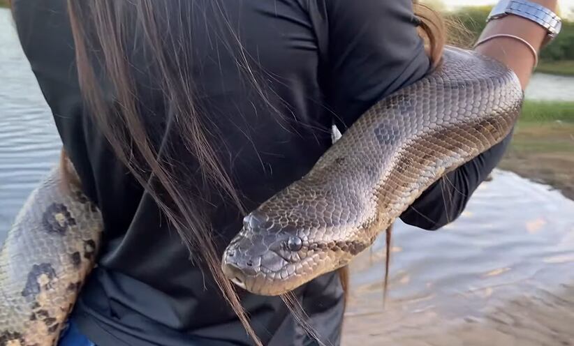 Hanna Caroliny, conhecida como a Princesa das Serpentes no YouTube e nas redes sociais, encontrou a sucuri e fez imagens incríveis.