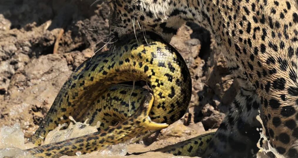 Neste dia, o felino apareceu nas margens do rio e ao caminhar pela água, encontrou a sucuri. A disputa começou e ninguém saiu vencedor, mas o registro mostra de perto a luta por sobrevivência.