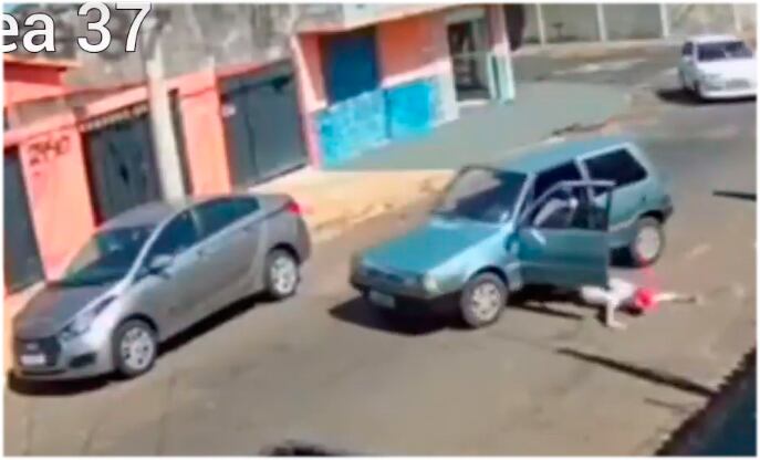 No vídeo, é possível ver o Fiat Uno trafegando pela rua quando passava por uma lombada e a porta do motorista abre sozinha e o motorista cai do carro. O Fiat continua em movimento, sobe na calçada, passa entre o poste e o muro sem bater e vai perdendo a velocidade, até parar em outra calçada.