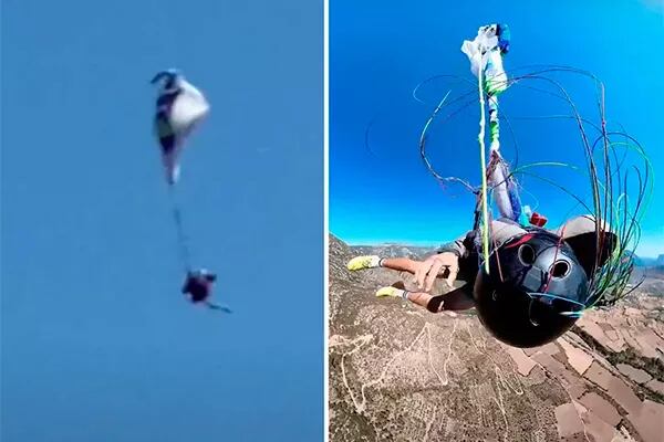 Na legenda do vídeo, Phillip explicou que uma “forte turbulência” fez com que as linhas se enrolassem. O registro mostrou quando ele tentou desenrolar o equipamento desesperadamente, sem sucesso. Os momentos de pânico seguiram até que o atleta finalmente conseguiu abrir o paraglider de emergência e chegou ao chão ileso.