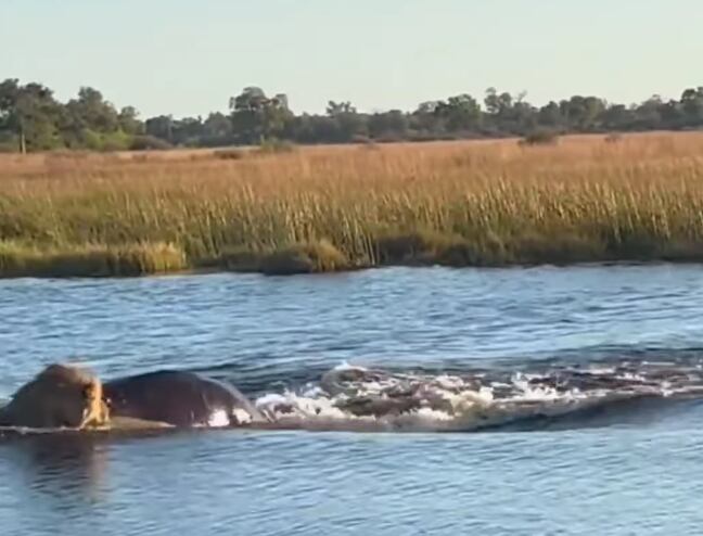 Uma manada de búfalos estava próxima e acompanhou todo o desenrolar da história, registrado em vídeo e que viralizou nas redes.